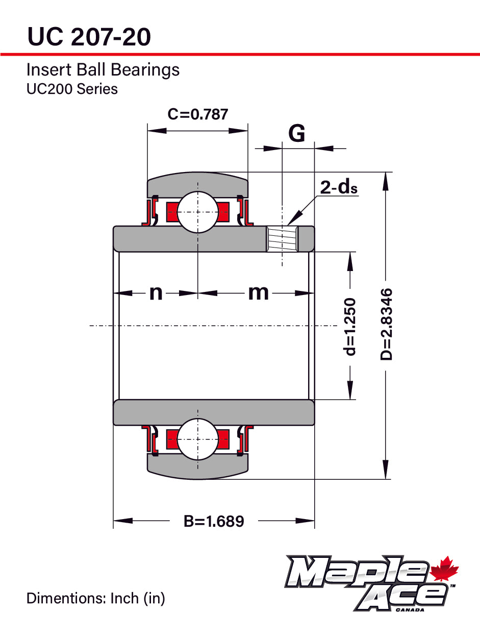 UC207-20 Insert Bearing 1-1/4" Bore, Spherical OD, Set Screws, Lube Hole